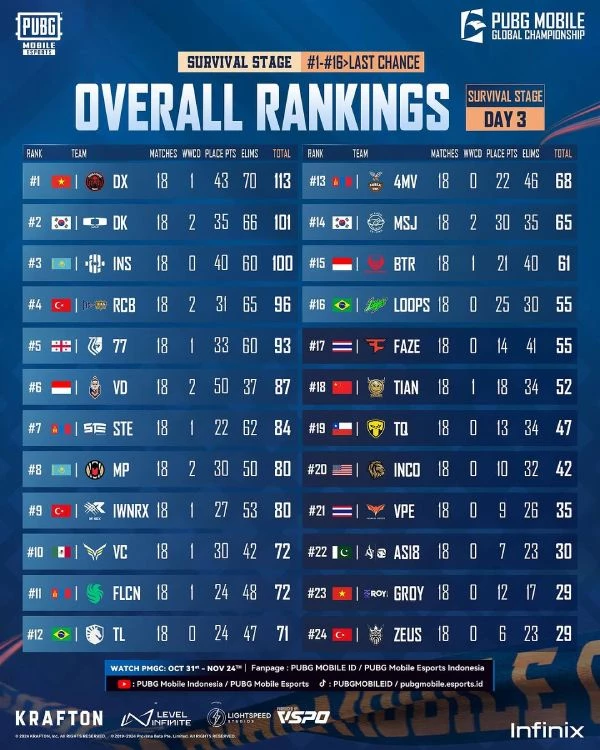 Babak Last Chance menjadi tantangan yang lebih berat, karena hanya tim-tim terbaik akan melaju ke Grand Finals. Perwakilan tim-tim Indonesia harus lebih agresif dan meningkatkan jumlah kill mereka untuk menjaga peluang.